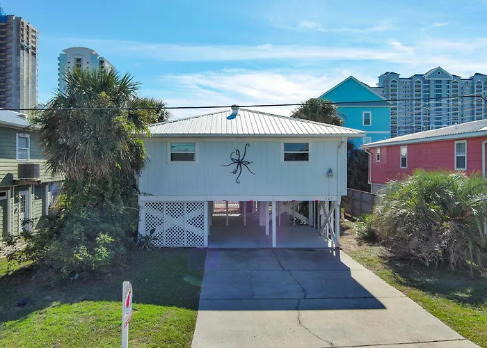 The 2-bedroom Beach N Back Gulf Shores villa is located merely an 8-minute walk from Waterfront seafood spots and welcomes its guests to enjoy snorkeling, diving, and bowling.